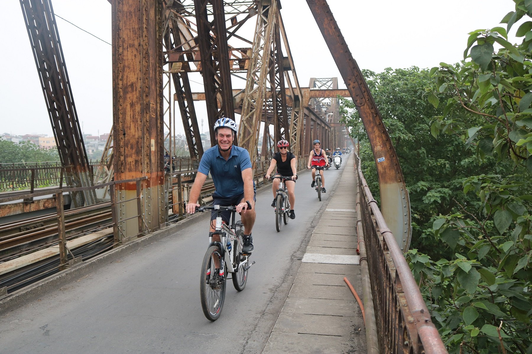 Cycling on the iron bridge over a hundred years old, You will experience watching the train rushing past in front of you, shaking the body of the bridge. It will be an interesting experience for your bicycle visit to Long Bien Bridge.